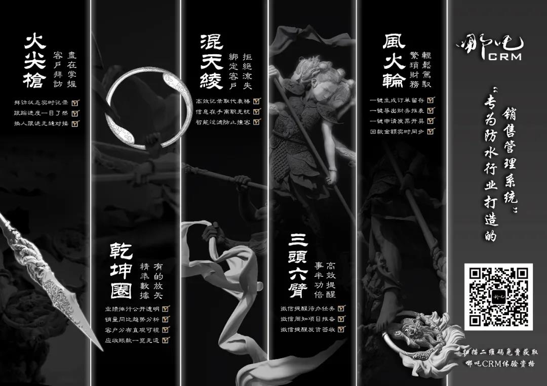 防水行業(yè)定制的銷售管理系統(tǒng)——《哪吒CRM》,賦能防水行業(yè)完成線上規(guī)范化、流程清晰化、人員可控化、數(shù)據(jù)可視化的行業(yè)升級,借此機會正式上線。