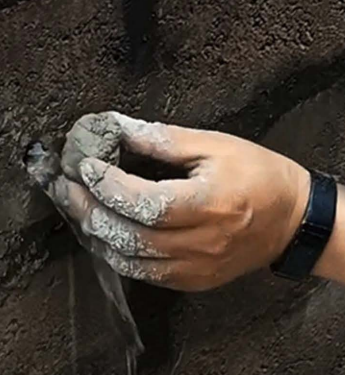基面處理:將基層表層雜物、泥漿清理干凈,露出混凝土結(jié)構(gòu)基面,查找漏點、裂縫、蜂窩孔洞等缺陷部位用電鎬剔鑿,結(jié)構(gòu)松動部位用電鎬剔鑿至堅實混凝土基面,裂縫剔鑿成V字形凹槽,剔鑿部位將清水清洗,用毛刷將殘渣浮灰清理干凈。