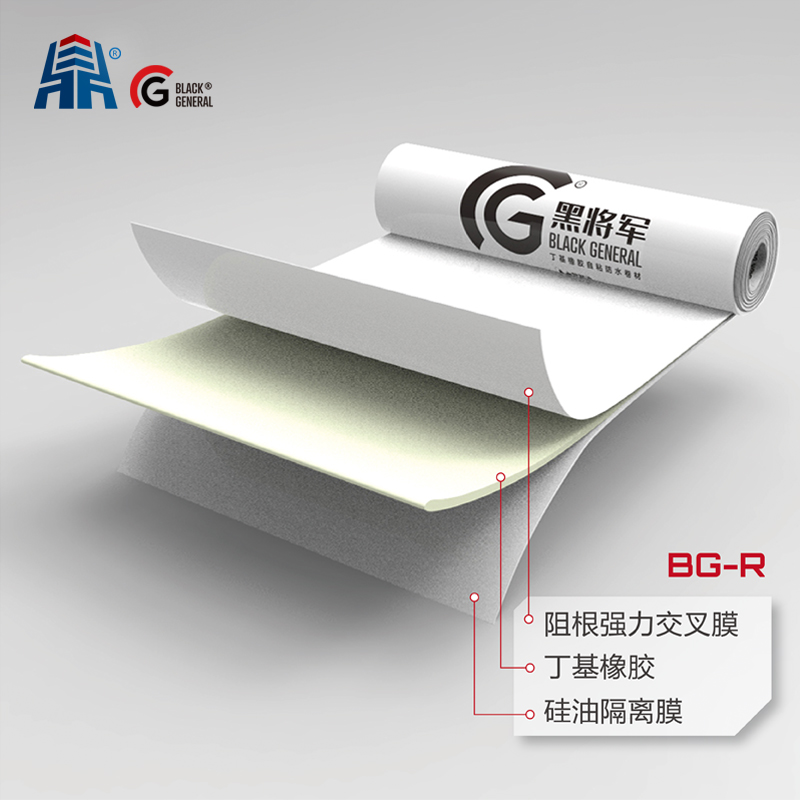 BG-R丁基橡膠耐根穿刺自粘防水卷材是在具有耐根穿刺功能的高分子片材上, 涂覆添加阻根劑的優(yōu)質丁基橡膠自粘膠料,并覆以隔離層而制成的采用自粘法施 工的防水卷材。卷材兼具化學阻根和物理阻根的雙重效果,也可以與BG-C丁基 非固化橡膠防水涂料復合使用,粘結強度大、持久不可逆,受環(huán)境因素影響小, 消除竄水層,造就出最完美的防水系統(tǒng)。
